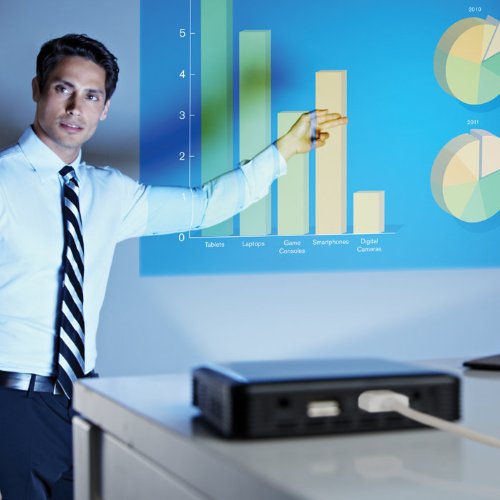 Một máy chiếu mà chỉ đơn giản là tuyệt vời-không có vấn đề làm thế nào bạn sử dụng nó. Pocket Projector Mobile's di động lên đến 85 lumens cho đến hai giờ một lần sạc duy nhất. Pin 3800mAh mạnh mẽ của nó sạc thông qua cổng USB và thậm chí tăng gấp đôi như một pin dự phòng cho các thiết bị của bạn khi sạc đầy. Một tích hợp bánh xe cho phép bạn điều chỉnh màn hình hiển thị độ phân giải tối ưu, trong khi các loa kép với điều khiển âm lượng cho phép bạn đi cùng video của bạn với loa riêng biệt âm thanh hoặc thêm bằng cách sử dụng jack âm thanh ra 3,5 mm. sử dđiện thoại di động bao gồm một cáp HDMI , adapter Micro HDMI và một bộ chuyển đổi Mini HDMI. Để kết nối với bất kỳ thiết bị mà không có một cổng HDMI, bạn sẽ cần một bộ chuyển đổi HDMI hoặc Apple Digital AV Adapter (được bán riêng).